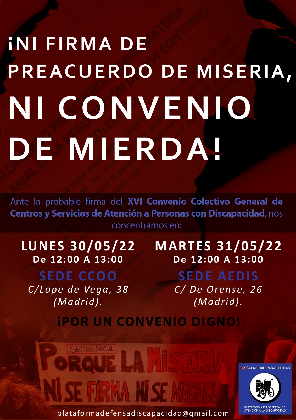 El cartel adjunto es de dos concentraciones en las sede de dichos sindicatos promovidas por la Plataforma de en defensa de la atención ala discapacidad, donde participamos varios delegados de CGT y de otros sindicatos.