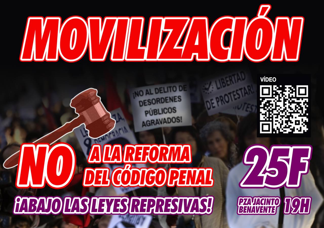 Se ha iniciado la campaña para difundir la movilización contra la reforma del Código Penal que tendrá lugar el sábado 25 de febrero a las 19:00 en la Plaza de Jacinto Benavente.