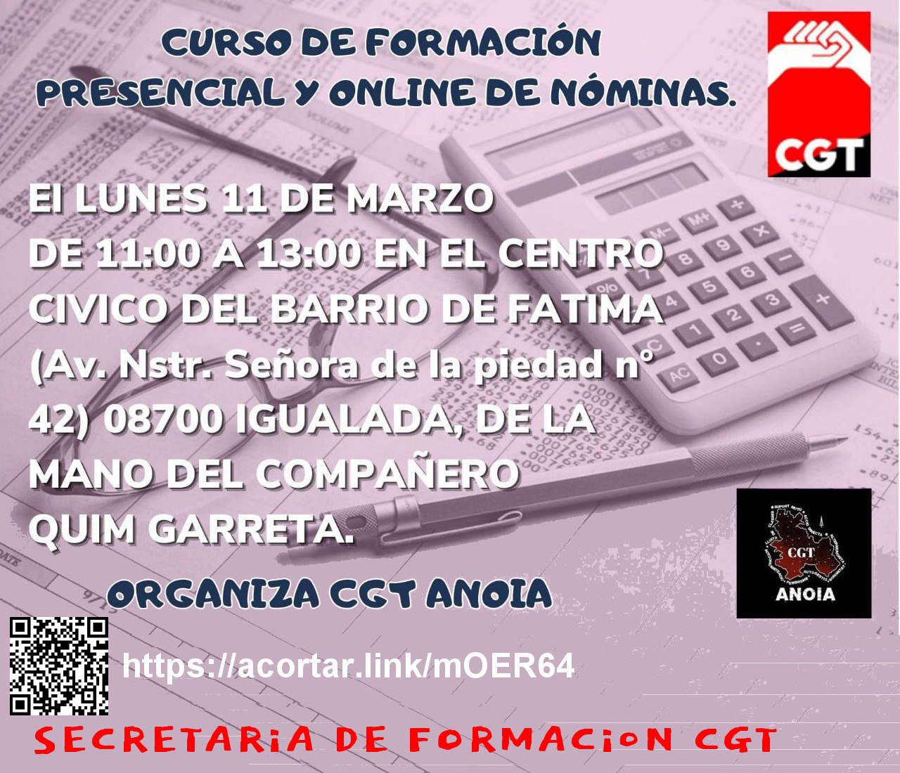 2. CURSO DE FORMACIÓN ON LINE Y PRESENCIAL "NÓMINAS" ORGANIZADO POR CGT
