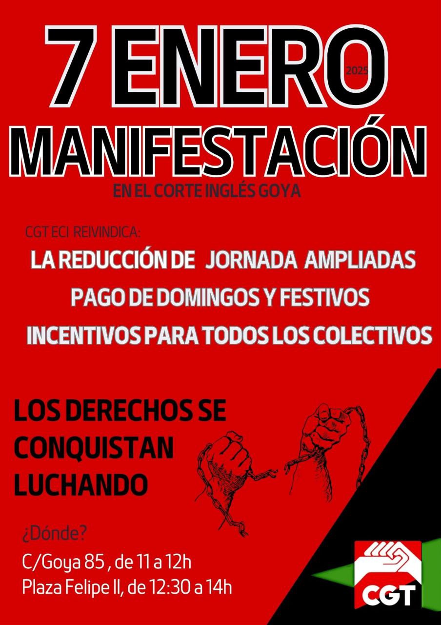 - 7 de enero de 2025. de 11 a 12h en la C/ Goya 85. Manifestación