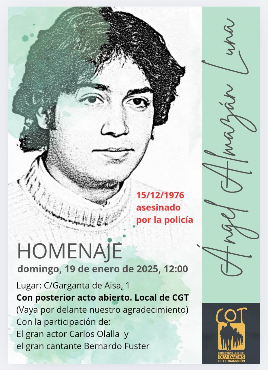 * 19 Enero 12:00h C/ Garganta de Aisa 1 Madrid, Homenaje a Angel
