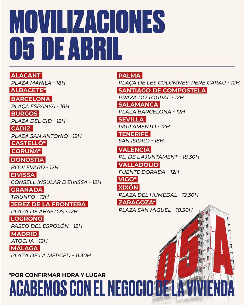 [Sindicatos] 5 Abril Acabemos con el negocio de la vivienda