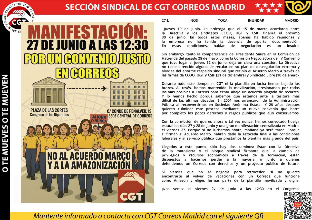 Desde la Sección Sindical de CGT en Correos, se convocan nuevas jornadas
