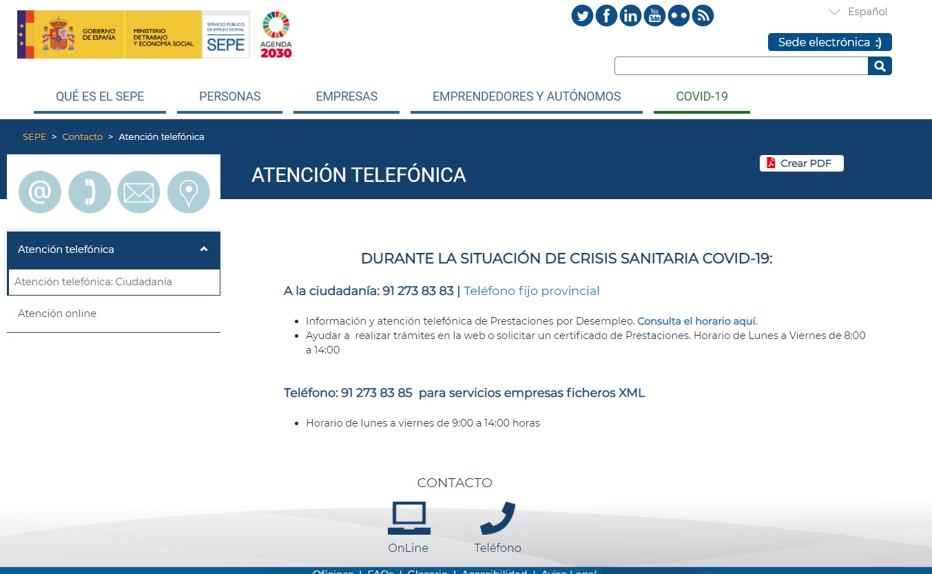 El servicio de información a la ciudadanía a través de una línea telefónica de 901 que presta el Servicio Público de Empleo Estatal (SEPE), venía realizando, entre otras, funciones de Apoyo al ciudadano en la navegación de la página web del SEPE (www.sepe.es) para la realización de trámites en línea e información sobre múltiples y variadas cuestiones tales como: el estado de ERTEs.o de gestión del subsidio de empleadas del hogar