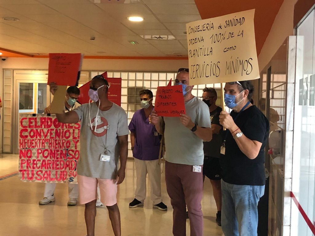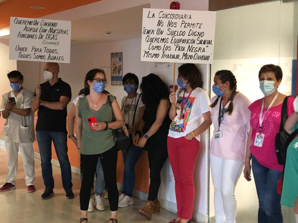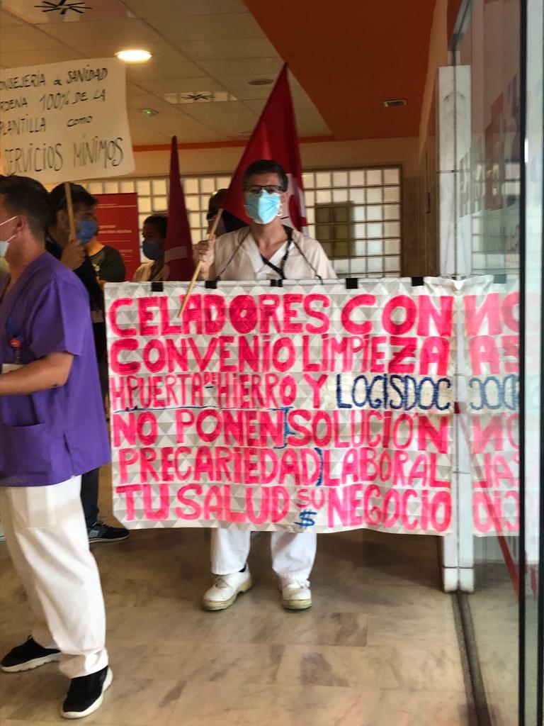 Hemos presentado un convenio de centro, con las mejoras salariales, y como base el convenio de limpieza. Hemos cogido las tablas salariales de San Sebastián de los reyes. No están dispuestos a negociar las mejoras salariales. Cada vez tenemos más servicios con menos personal, sobre carga de trabajo, no cubren excedencias, cubren algunas bajas laborales, siempre estamos por debajo del personal necesario para dar un servicio óptimo y acorde a las necesidades del hospital y de los pacientes. Ahora resulta que para fijar los mínimos para la huelga, todos somos mínimos, nos han quitado el derecho constitucional de la huelga, además de llegar a un acuerdo con la concesionaria, y gerencia del hospital Puerta de hierro, de no poner sigis (sanciones que ponen a diario por los servicios mal gestionados) además de los días de huelga, el personal contratado para las vacaciones que empiezan en julio, los incorporan por lo tanto seremos más de mínimos de las presencias habituales, algo que esta prohibido realizar en una huelga.