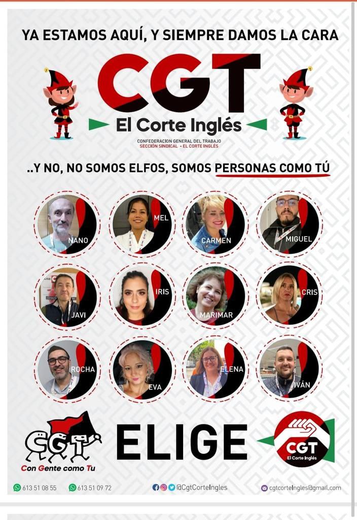 El viernes 18 de noviembre de 2022, se han celebrado elecciones sindicales en algunos centros de El Corte Inglés en la Comunidad de Madrid. En el Comité de Empresa de los históricos centros de la Calle Goya, que representa a más de 1000 personas en plantilla, a pesar de todas las constantes dificultades, la presencia de la CGT está garantizada para los próximos años, y va a ser la punta de lanza para entrar en otros centros comerciales de esta conocida empresa.