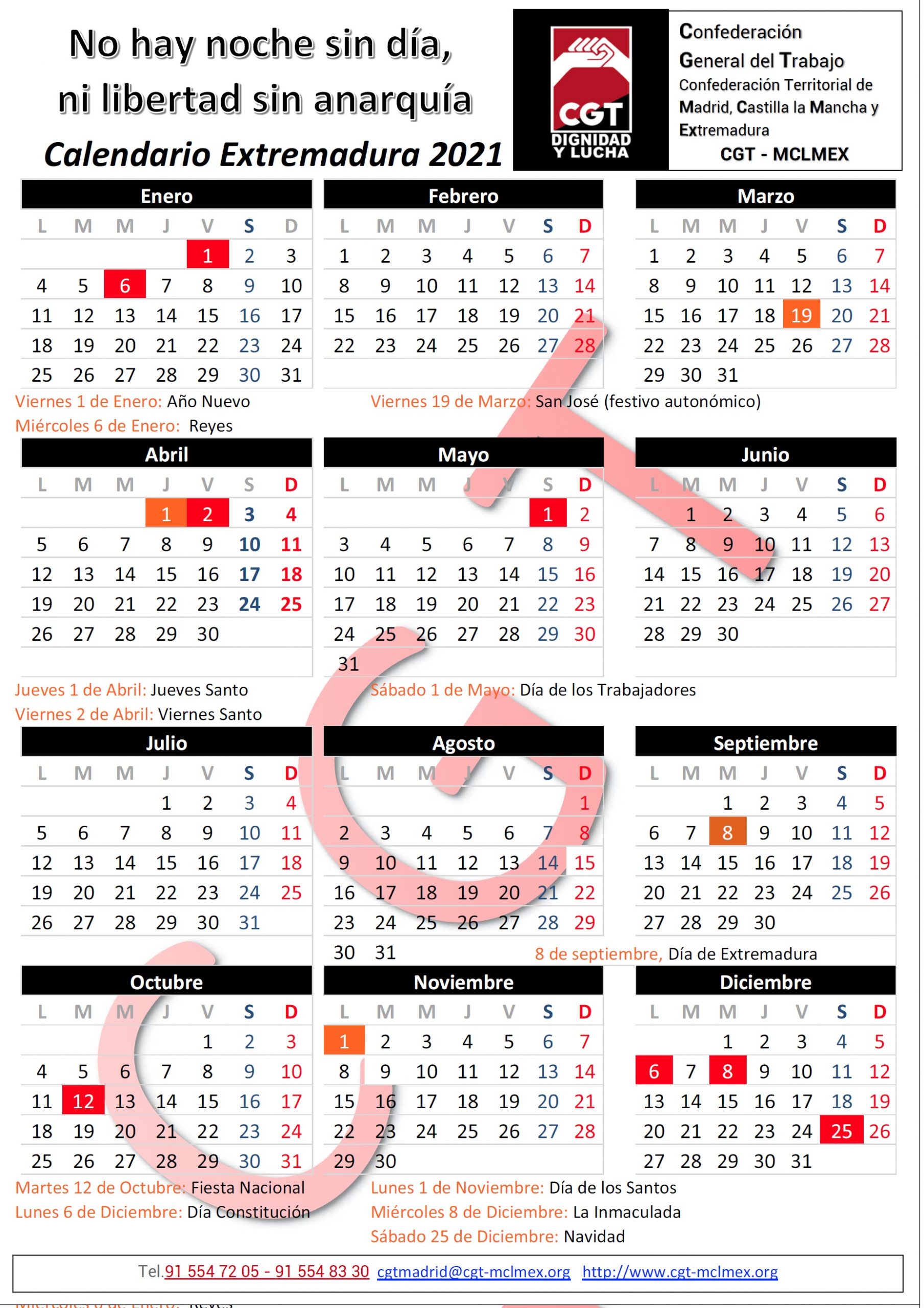 - DECRETO 48/2020, de 26 de agosto, por el que se fija el calendario de días festivos de la Comunidad Autónoma de Extremadura para el año 2021. (2020040061)