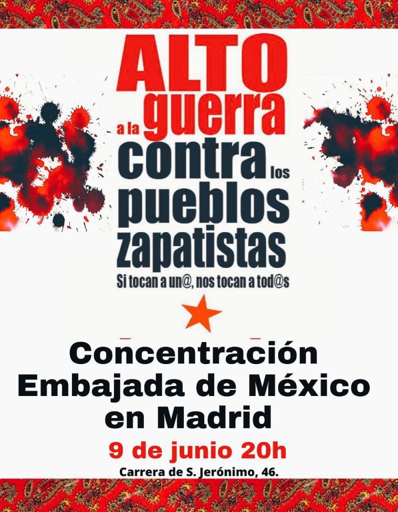 Dentro de la campaña internacional de apoyo a los pueblos Zapatistas que se celebra en estos días, se convoca una concentración en ante la Embajada de México en Madrid