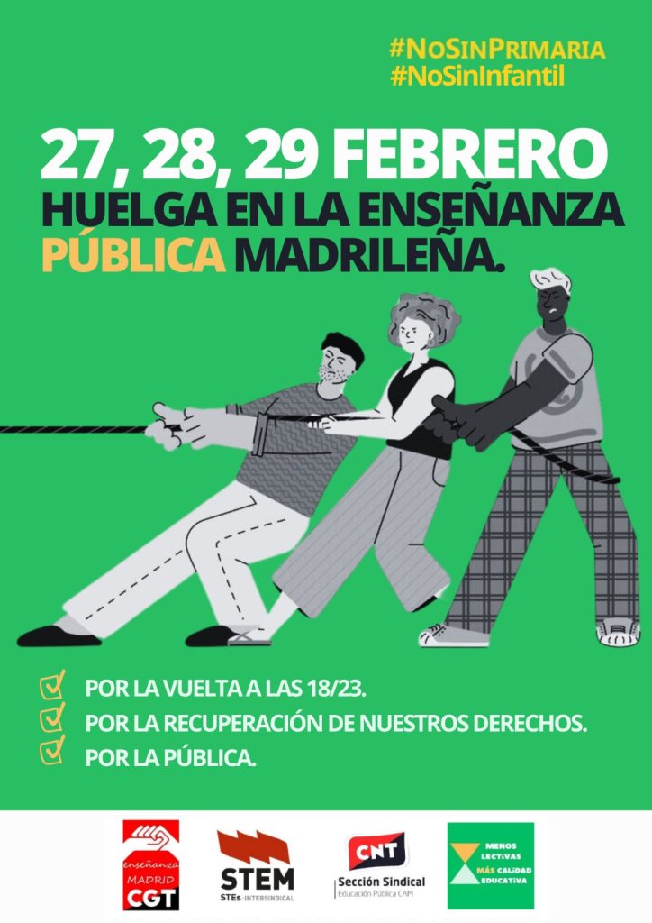 ENSEÑANZA | HUELGA EN LA ENSEÑANZA PÚBLICA MADRILEÑA – 27, 28 y 29 FEBRERO