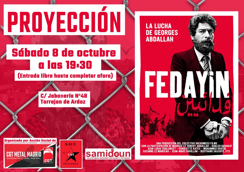 Se poryectará el documental FEDAYIN, La lucha de Georges Abdallah, acompañado de una charla/debate por parte de Samidoun.
