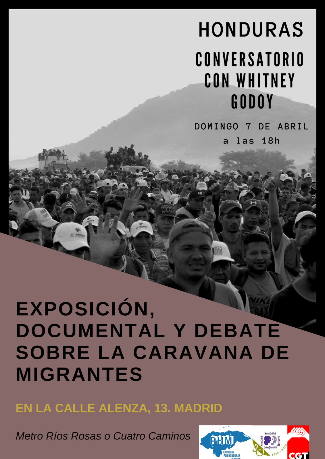 Junto a la Plataforma por Honduras en Madrid, Entrepueblos y la Confederación General del Trabajo en Madrid, Castilla La Mancha y Extremadura, hemos organizado un conversatorio durante el que se podrá visualizar también parte del documental «Un éxodo sin Moisés» y la exposición de fotografías que tomó Whitney durante la marcha.