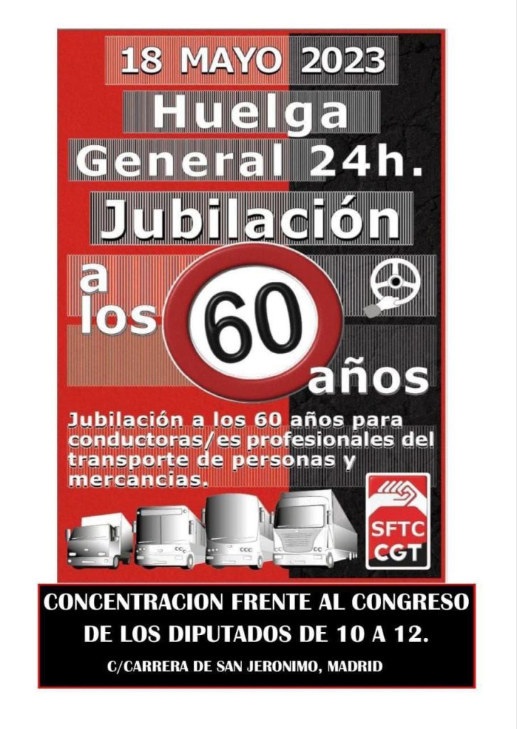 Jornada de Huelga de Transporte por Carretera, convocada para el 18 de mayo en todo el Estado, por el Sector Federal de Transporte por Carretera de CGT (SFTC – CGT)