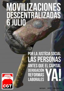 En la última Reunión Plenaria del Comité Confederal se acordó dar continuidad a las movilizaciones efectuadas en los meses de abril y mayo reivindicando la derogación de las reformas laborales de 2010 y 2012, entendiendo que ahora que los llamados «agentes sociales» están negociando nuestro futuro junto al Gobierno, tenemos la obligación de salir a la calle a luchar por nuestras reivindicaciones.
