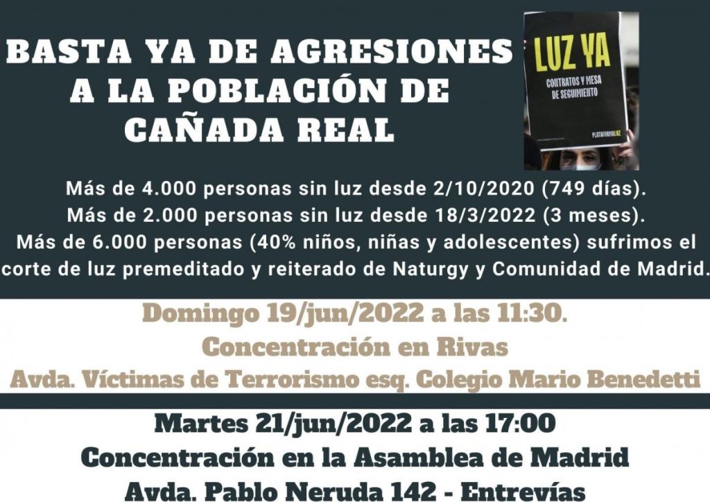 Apoyada por la Plataforma Cívica «Luz ya en Cañada Real», de la que forma parte CGT MCLMEX