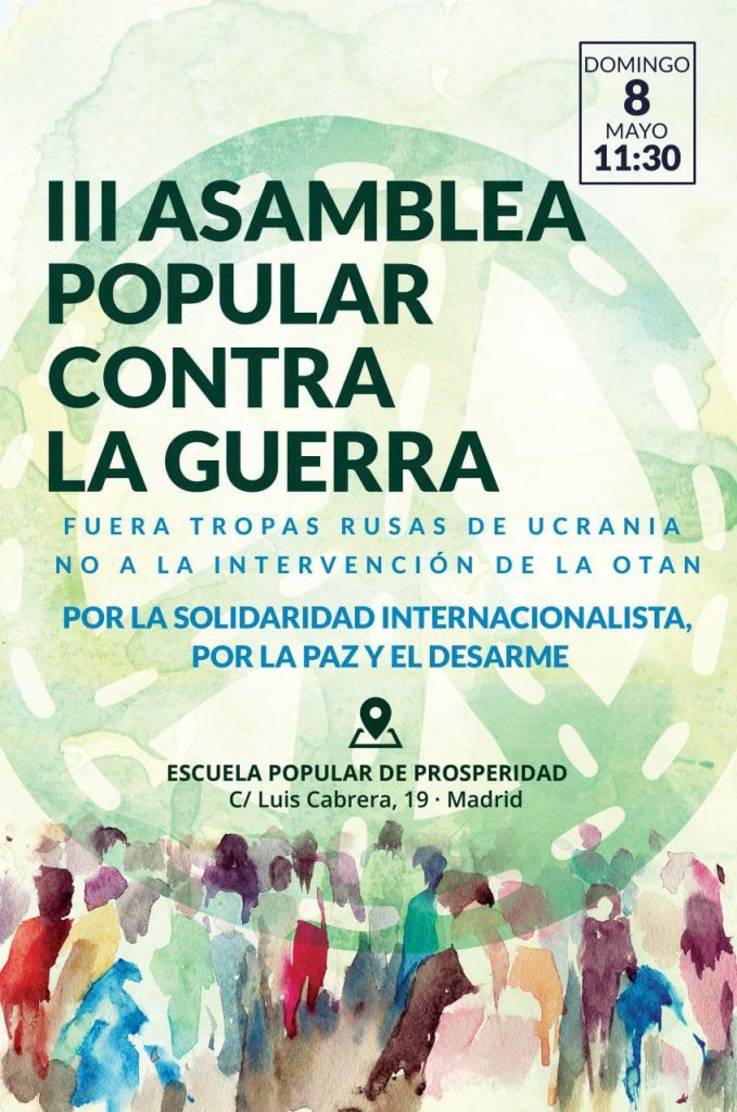 CGT MCLMEX, y otras muchas organizaciones, convocamos la III ASAMBLEA POPULAR CONTRA LA GUERRA para seguir construyendo colectivamente una sociedad antimilitarista, basada en la solidaridad internacionalista, que ponga la vida en el centro y promueva la paz y el desarme.