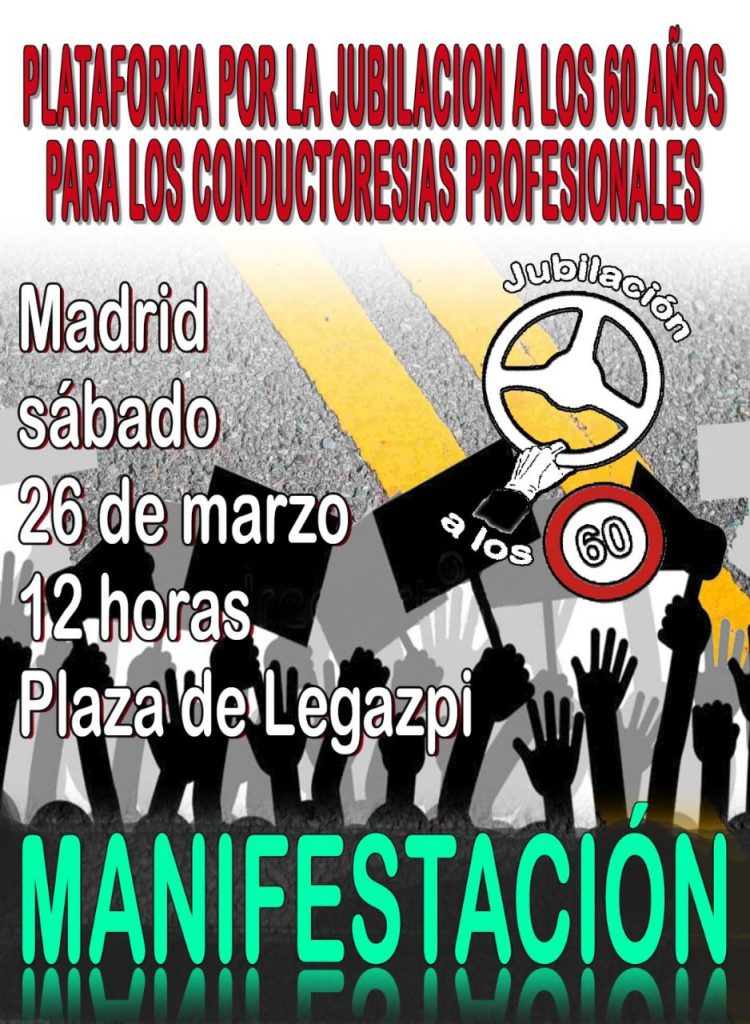 CGT, entre otras componentes de la Plataforma por la jubilación a los 60 años de Conductores/as Profesionales, convoca: