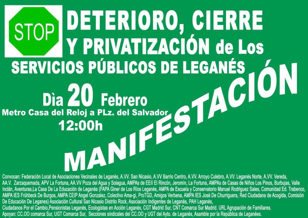A.SOCIAL | Manifestación contra el deterioro, cierre y privatización de los servicios públicos de Leganés