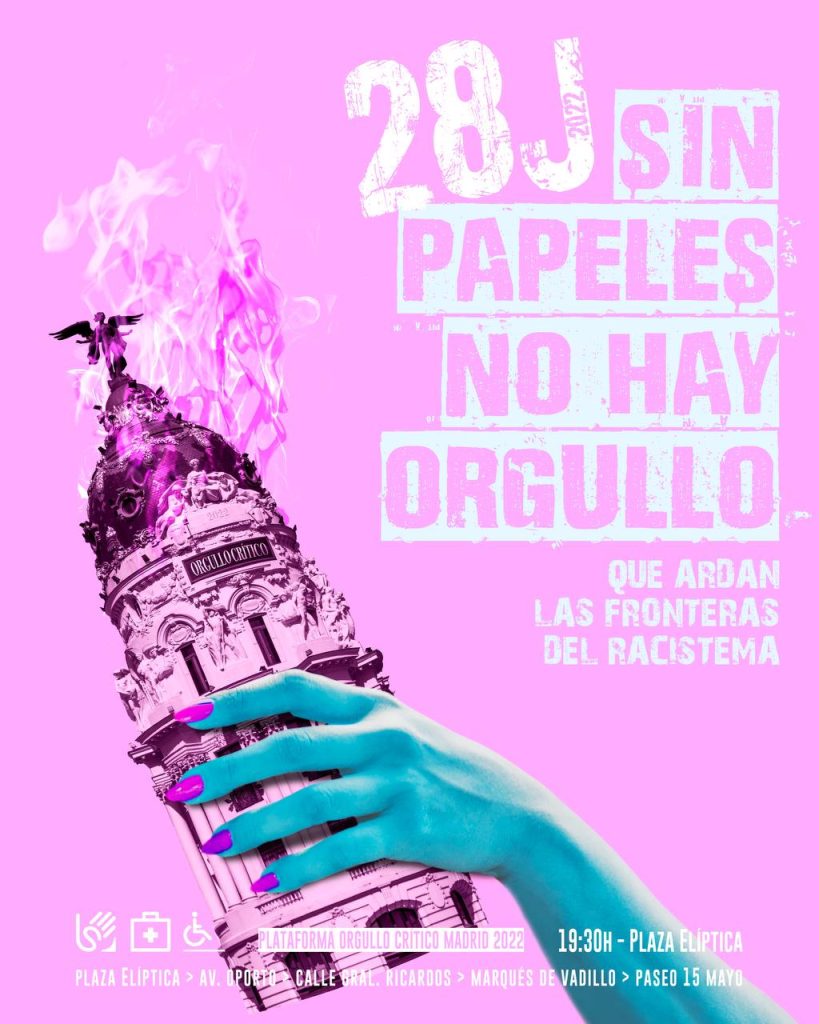 Salimos otra vez a las calles: nuestro espacio de encuentro, reivindicación, fiesta y protesta. Este año, poniendo el foco en @regularizacionya porque estamos hartes de este sistema racista y cishetero que excluye, persigue, tortura, encierra y deporta. ¡Vamos a quemar las fronteras, los CIEs y las prisiones! ¡Que todo arda! ¡Sin papeles no hay orgullo!
