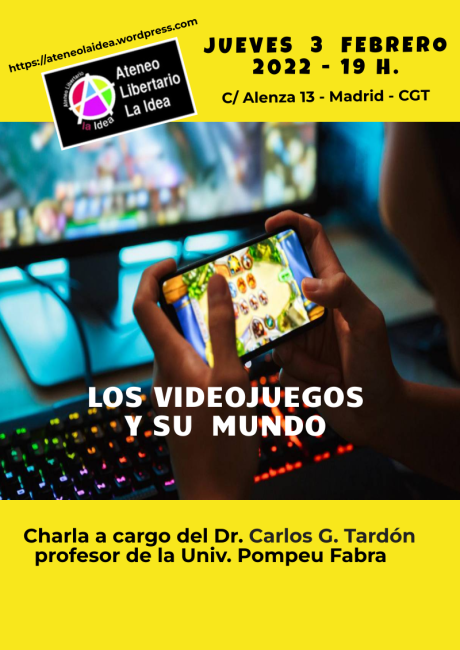 La próxima actividad que se va a realizar en el Ateneo para el próximo jueves día 3 de Febrero, se va a tratar un tema bastante interesante y a la vez preocupante, por las controversias que en algunos aspectos puede suscitar por el gran desarrollo que ha experimentado actualmente en su aplicación en los distintos campos de nuestra sociedad, laboral, educativo, formativo, lúdico, etc. como son los videojuegos.