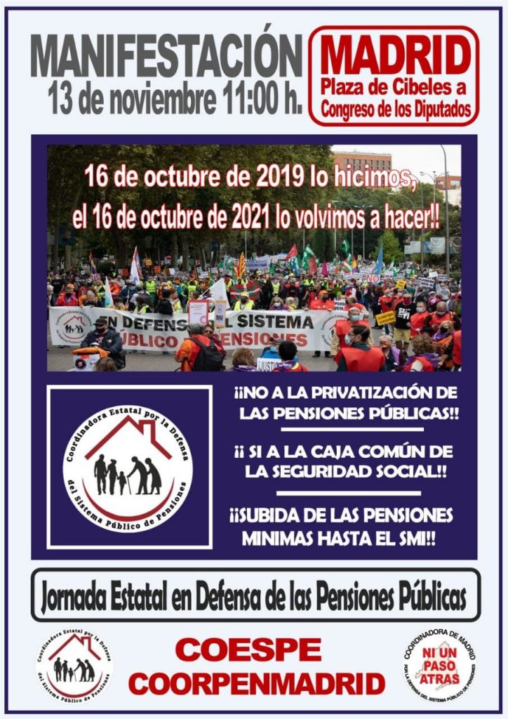 CGT MCLMEX se une a esta convocatoria para defender nuestras Pensiones Públicas y demandar al Gobierno que ponga fin a los anunciados recortes, a las pensiones de miseria y a los Planes Privados de Empresa. Si no somos capaces de remediarlo, habrá recortes de las futuras jubilaciones, y una privatización del Sistema Público de Pensiones, y no se garantizará la capacidad adquisitiva de las pensiones a partir del 2022.