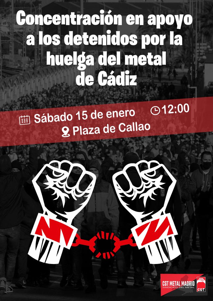Desde CGT METAL MADRID exigimos la inmediata libertad sin cargos de los/as compañeros/as detenidos/as, el fin de la represión y la dimisión de todos los entes responsables de su ejecución.