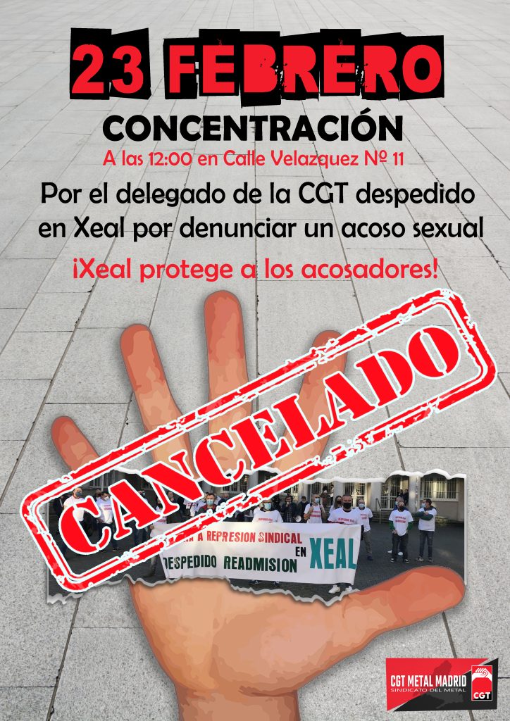 METAL | ¡CANCELADO! Concentración en apoyo al delegado de la CGT despedido en Xeal por denuncia un acoso sexual
