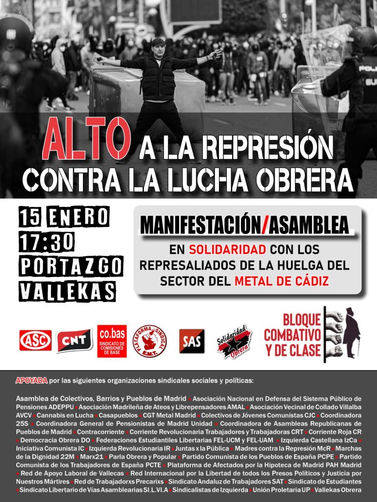 Por estos motivos, CGT Metal Madrid, nos adherimos a la manifestación convocada por el Bloque Combativo, organizando así, entre todos y todas, una jornada de lucha y solidaridad en distintos puntos de Madrid durante toda la jornada.