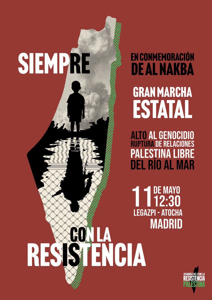 Palestina | Desde CGT apoyamos y nos solidarizamos con #acampadasuniversitariasporpalestina y volvemos a convocar el próximo día 11 de mayo por #Palestina http://cgt.org.es/el-movimiento-estudiantil-madrileno-organiza-las-primeras-acampadas-por-palestina-en-la-universidad-complutense/… Gran Marcha Estatal para conmemorar Al Nakba Legazpi-Atocha. 12:30h