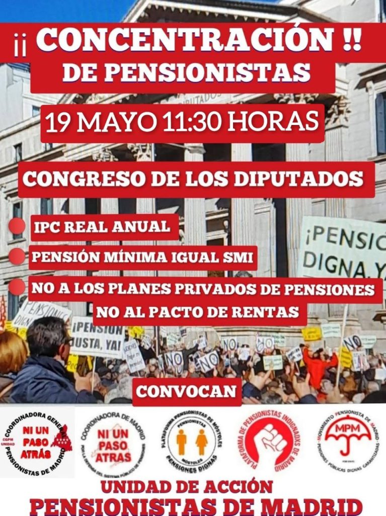 La próxima cita para unirnos a esta importante lucha, que nos va a afectar a toda la clase trabajadora, será el 19 de mayo, a las 11:30 frente al Congreso de los Diputados.