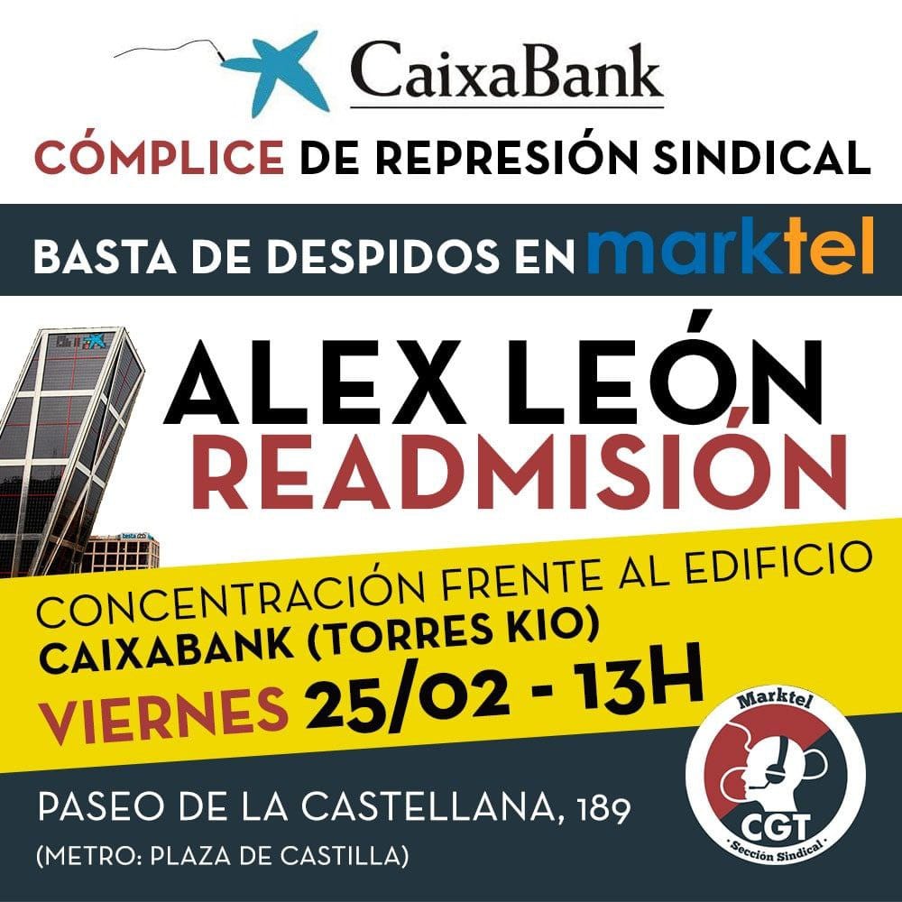 Nos manifestamos frente a Caixa Bank como cómplice del despido en Marktel. Han despedido a miles de personas y cerrado cientos de oficina para externalizar servicios con trabajadores precarios para externalizar la represión sindical y los despidos.