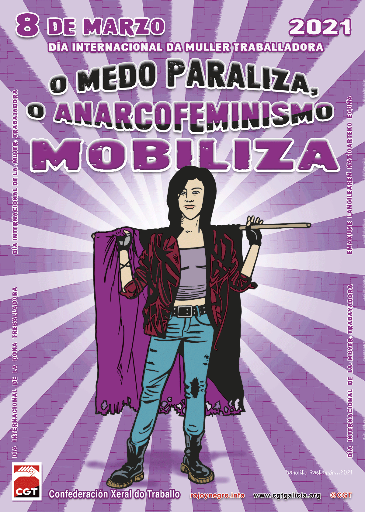 8 de Marzo de 2021¡El miedo paraliza, el anarcofeminismo moviliza! Una vez más, la patronal, la clase política y los sindicatos verticales se han unido para atentar contra la clase trabajadora, invisibilizando y silenciando aún más las desigualdades que sufrimos las mujeres. La reanudación paulatina de la actividad en los servicios no esenciales, la estafa […]