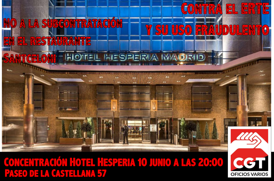 ![]() El pasado 27 de febrero de 2021 fue detenido nuestro compañero Santiago de la Iglesia, S. Gral. del Sindicato de Oficios Varios del Sur de Madrid de CGT, en el contexto de una manifestación celebrada en Madrid en Defensa de la Sanidad Pública, convocada por la Coordinadora Antiprivatización de la Sanidad. La manifestación se celebró […] ![]() Cancelada la concentración convocada para esta tarde por los compañeros de la sección de Hesperia ya que la empresa ha accedido a negociar. CGT SOV Madrid |